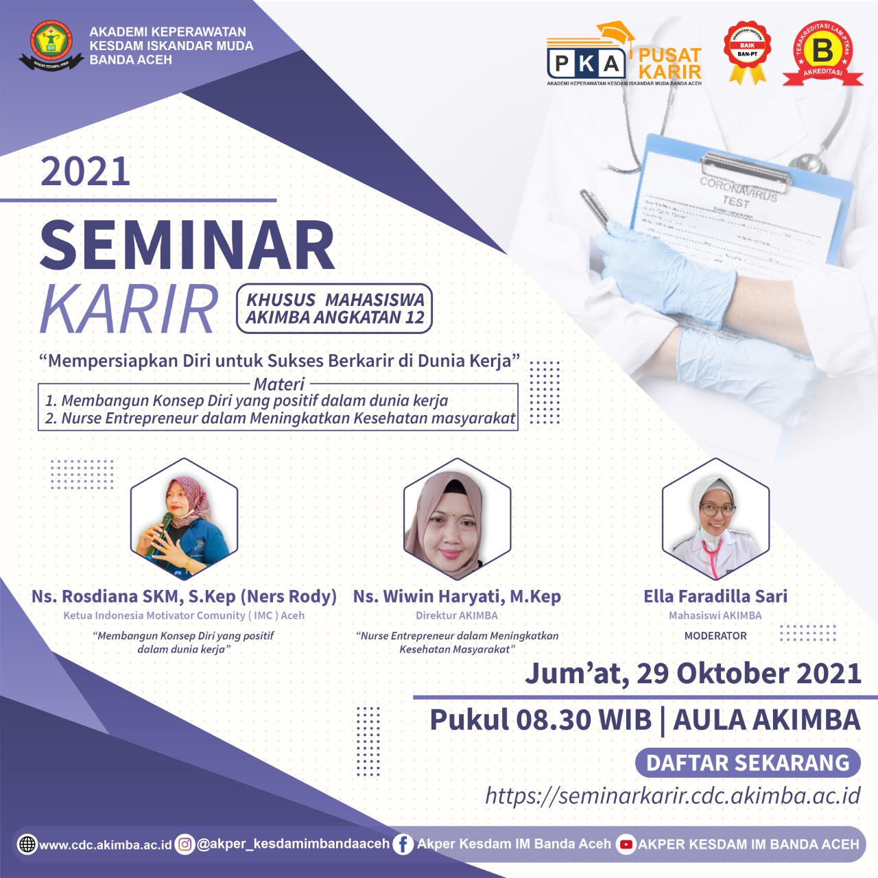 Narasumber: Ns. Wiwin Haryati, M. Kep (Direktur Akper Kesdam IM Banda Aceh)